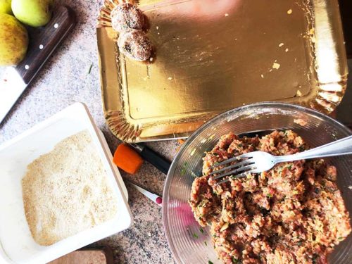 一口サイズではなく、もう少し大きくしたポルペットーネ(Polpettone)という料理もあるので、お好みで大きさは調整してください。